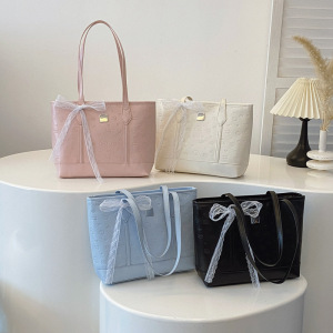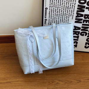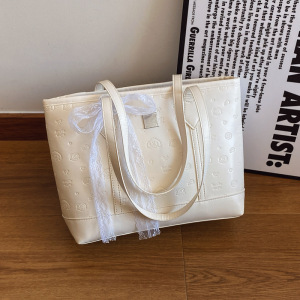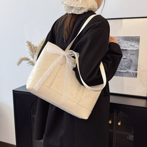 2025 新しい質感の森かわいいトレンディな夏のファッションシルクスカーフ無地大容量通勤ショルダー脇の下トートバッグ