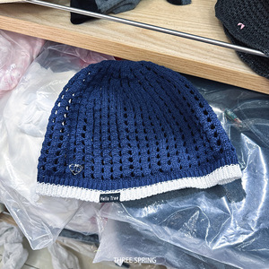 卸売韓国 2025 新しいコントラストカラーロックエッジイン太い糸ニット帽子女性の薄い夏ニッチウール帽子