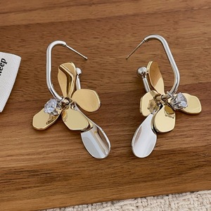 フレンチレトロニッチデザイン、シンプルな気質、メタルコントラストフラワーイヤリング、コールドスタイル、ファッショナブルでハイエンドのイヤリング