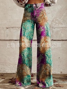 独立したサイト Xiyin ヨーロッパとアメリカの貿易クロスボーダーレディースカジュアルパンツプリント模造ジーンズワイドレッグ 3D トレンディなファッション女性