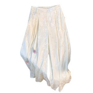 实拍新中式东方古韵气质汉服改良国风提花民族风淑女垂感百搭裤子