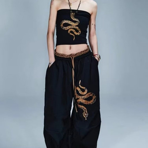 アメリカンヒョウ柄スネークシミターパラシュートパンツ女性の夏のヒップホップストリートワイドレッグパンツヒップホップジャズダンスカジュアルパンツ