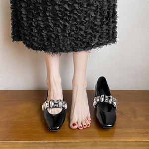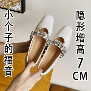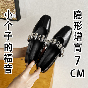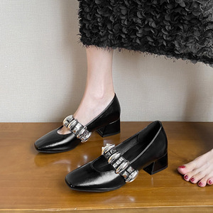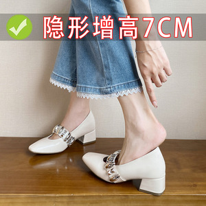 7 センチメートル高さのマリージェーンシューズ女性のための 2025 夏の新しいスクエアトゥ浅い口のシングルシューズ女性のための厚いヒールソフトソールハイヒール