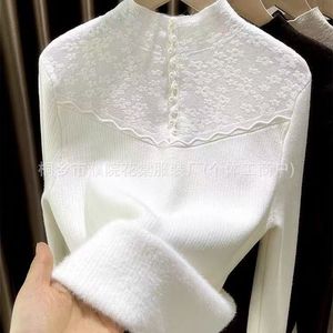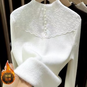 厚みのあるワンピースベルベットハーフタートルネックニットセーター女性用秋冬新作レース暖かいトップスボトリングシャツ女性用インナー