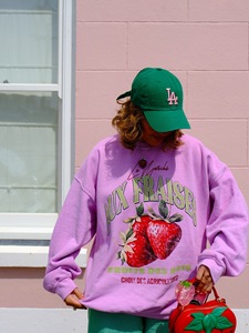 春と秋の怠惰なイチゴプリントスウェットシャツレディースルーズラウンドネックプルオーバーピンクスウェットシャツラウンドネック長袖レディーストップ