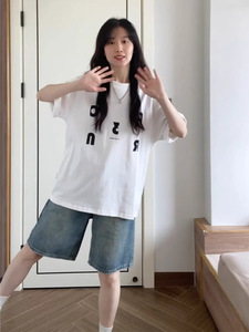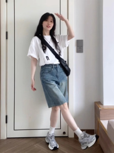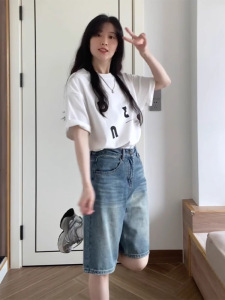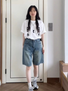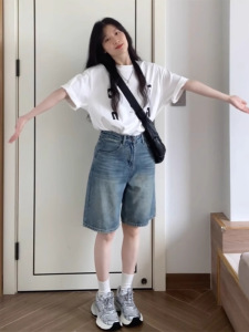 アメリカンレトロクォーターパンツレディース夏新作ハイウエストファットmm大きいサイズゆったりスリムストレートデニムショートパンツミッドパンツ