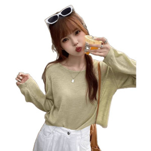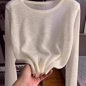 Pure Desire 日焼け止めブラウス女性の夏薄いアイスシルクセーター長袖 Tシャツルーズレイジースタイルハイエンドトップ