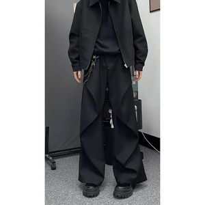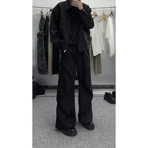 黑色弯刀微喇西裤垂感高级感褶皱伞兵工装裤子男款夏季阔腿休闲裤