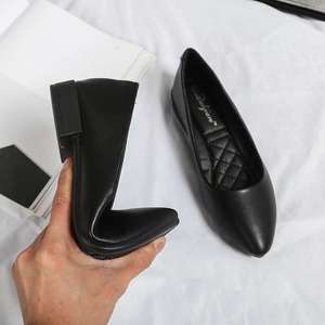 本物のソフトレザーソフトソールフラットワークレディースシューズ2025新しい多用途ポインテッドトゥローヒール浅い口のシングルシューズ女性の春の女性の靴