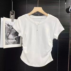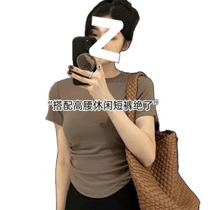 プラスサイズの女性の少し太ったmmアメリカン半袖ショルダーTシャツレディース夏スリムニッチデザインウエスト痩身トップ