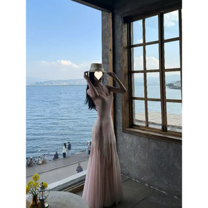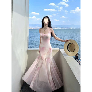 タイのドーパミン島の休暇の雰囲気純粋な欲望甘くてスパイシーなスーパーフェアリーガール花柄メッシュヒップカバーサスペンダーロングスカート