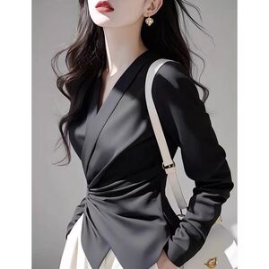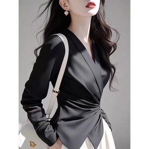 春のフレンチスタイル、ユニークでシック、ニッチ、軽い贅沢、年齢軽減、外国風、高級感、ピンチウエスト長袖シャツ、レディーストップス