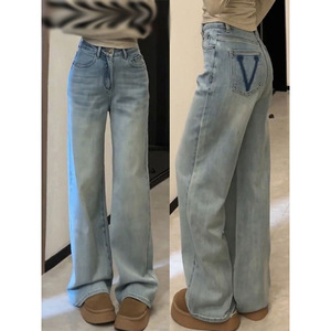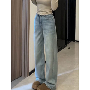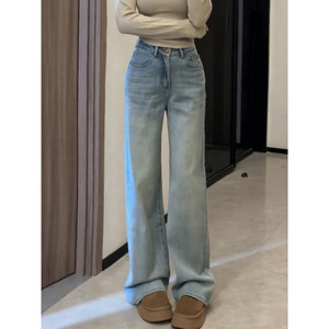 2025年秋季阔腿牛仔裤女高腰显瘦窄版新款浅蓝拖地百搭直筒裤修身