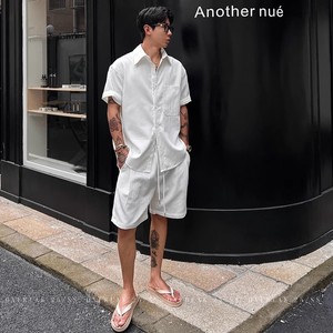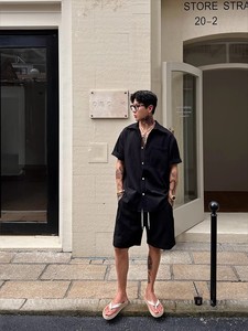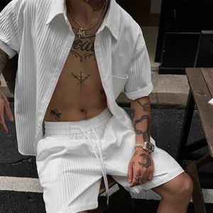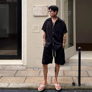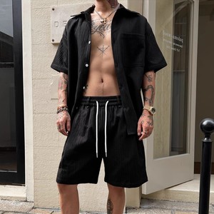 OXFREAK「アイスシルクプリーツオールドマネースタイル」テクスチャードカジュアルスーツメンズ夏ルーズシャツストレートショーツ