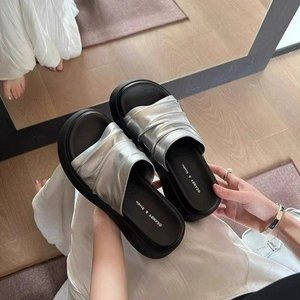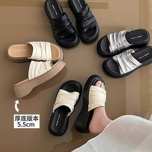 厚底スリッパのソフトレザーバージョン、夏のアウターウェア、2025年の新しいスタイル、スカート付き、ビーチでの休暇、女性用のワンラインサンダル