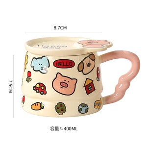 見栄えの良い動物落書きマグ、蓋付きクリエイティブセラミックマグ、女の子へのギフト、オフィスウォーターカップ、お土産