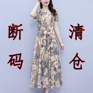アイスシルクサテンドレス夏の新しいスタイルルーズスリムロングスタイル年齢軽減襟半袖スカート