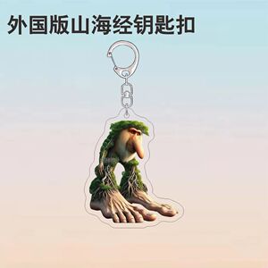 Douyin ホットエッセンス外国山海経キーホルダー面白い抽象的な木の棒人間の大きな足の木の妖精象アクリルペンダント