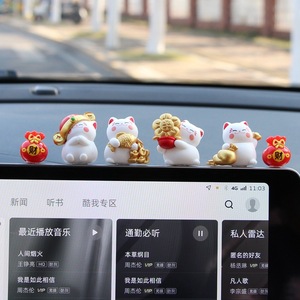 かわいい招き猫車の装飾品車のセンターコンソール画面コンピュータディスプレイ車内装飾用品小さな装飾品