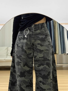 【強力メーカー】アメリカンハイストリート迷彩ワークジーンズレディース春新作ハイウエストワイドレッグストレートパンツ