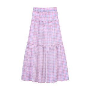クロスボーダーレトロコントラストカラーチェック柄スカートロングスカート女性用2025夏小柄レトロルーズ痩身スカート