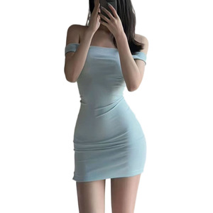 黑色纯欲风甜辣妹一字肩连衣裙露肩气质辣妹锁骨修身洋气包臀短裙