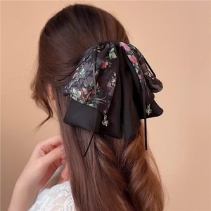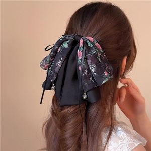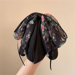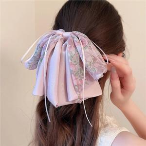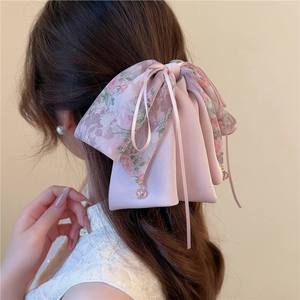 高級ローズプリントメッシュリボンヘアピンフレンチ新スタイル雰囲気ポニーテールクリップライト高級ヘアクリップ