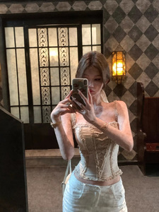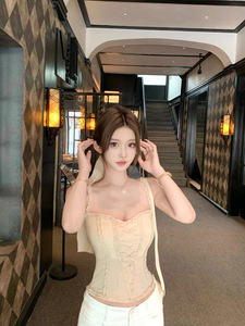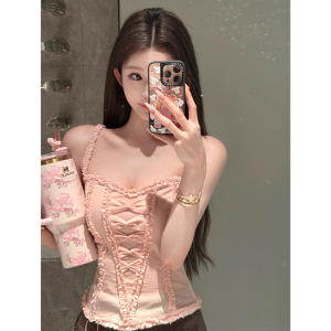 JMSHOP アリスヴィンテージリボンサスペンダーデザインピュアデューティスリムショートトップ女性夏