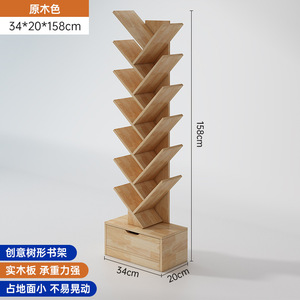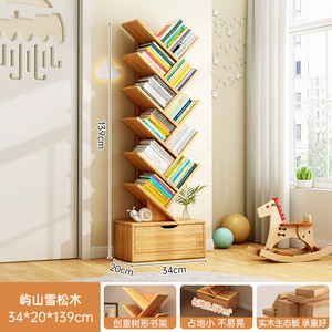 無垢材の本棚クリエイティブツリー型床置き収納ラックホームリビングルーム収納ラック壁コーナー本棚子供用収納キャビネット