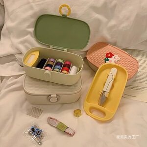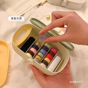 多機能裁縫収納ボックス家庭用ポータブル学生寮裁縫キットツールセット手縫い針ビューバブル