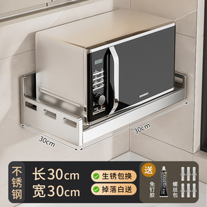 ステンレス製キッチン電子レンジラック壁掛け多機能パンチフリー壁掛け吊り下げ収納ラック