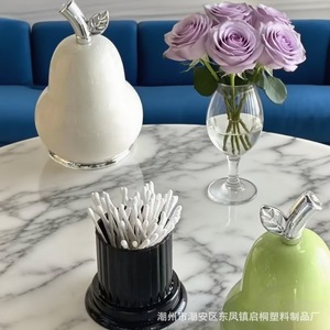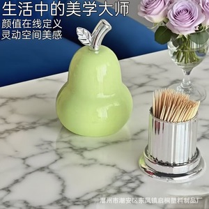 クリエイティブで見栄えの良いつまようじホルダー、ホームリビングルーム防塵デンタルフロス綿棒収納ボックスデスクトップ梨型装飾品つまようじボックス