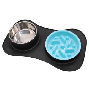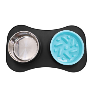 ペットスローフードボウルシリコーン犬ボウルステンレス鋼ペットボウル犬と猫の転倒防止飲料水給餌ダブルボウル用品