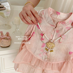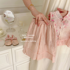 【Xian Ning Qi】桃の妖精!オリジナル女の子の新しい中国風スーツ夏の中国風チャイナドレスベストワイドレッグパンツ