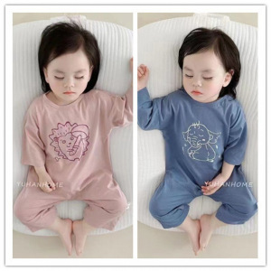 婴儿七分袖连体衣春夏新款女宝宝薄款护肚睡衣儿童睡袋空调家居服
