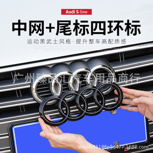 アウディ車のロゴの改造に適しています A3/A4L/A5/A6L/A7/Q2L/Q3/Q5L 4 リング ブラック ウォリアー フロントおよびリア ロゴ