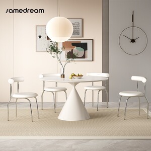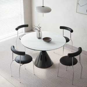フレンチネゴシエーションテーブル ロックボード ラウンドダイニングテーブル ピュアホワイト モダン シンプル ラウンドテーブル 小型家庭用 ダイニングテーブルと椅子の組み合わせ
