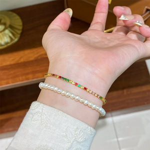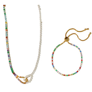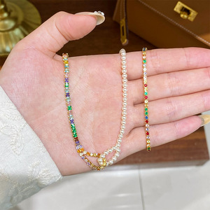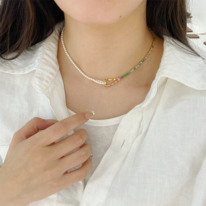 レトロなファッション気質多用途ドーパミンカラージルコン石家真珠ネックレスライト高級ハイエンド鎖骨チェーン女性用