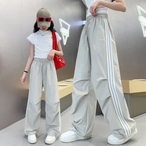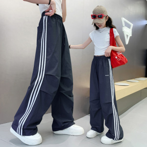 女の子の防蚊パンツ夏の新しい女の子のストレートアイスシルクカジュアル中型および大型子供用パンツ子供用速乾性スポーツパンツ