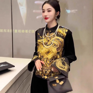 2025 秋の新作中国風の女性の中国風プリントボタンジャケットツーピーススーツパンツライト高級ハイエンド