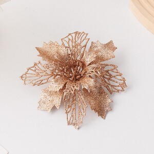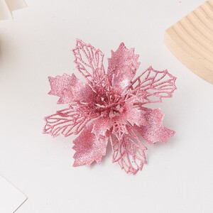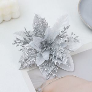 国境を越えて人気の高い造花、金粉入りクリスマスフラワー、五角形の松葉、クリスマスツリーの飾り、クリスマスリースのアクセサリー