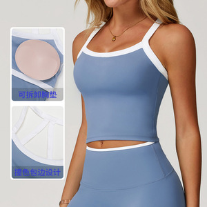 クロスボーダーヌードヨガベスト、コントラストカラーの中空美背中フィットネスウェア、アウターウェア、ハイエンドランニングスポーツブラ2027
