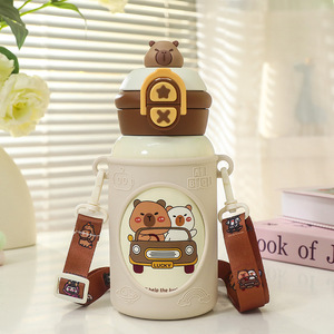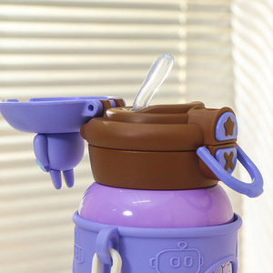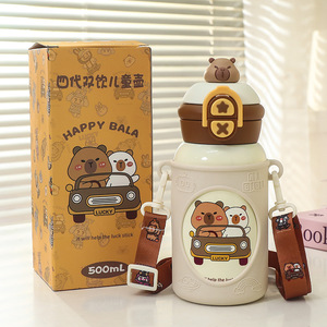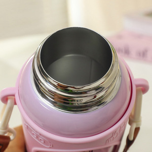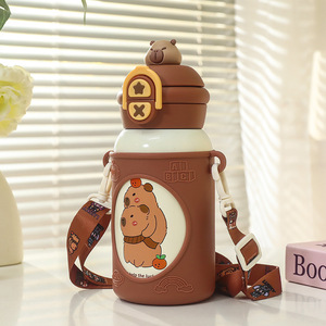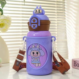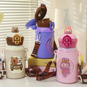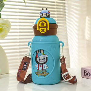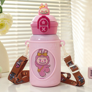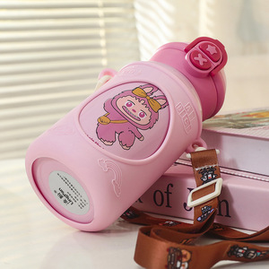 网红潮流款学生公仔儿童壶一杯双饮弹跳不锈钢保温杯带杯套背带壶