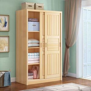 实木衣柜卧室家用推拉门儿童松木衣服收纳柜子出租房用移门大衣橱