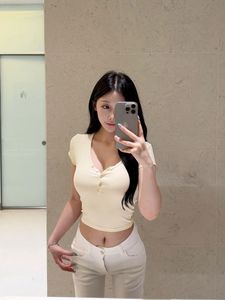 春夏新作万能Tシャツレディース超弾性レーヨンカットオフヘンリーVネックショートトップ