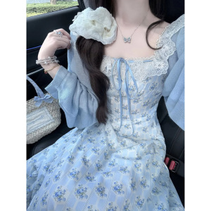 フレンチスイートカレッジスタイルレースステッチ花柄ドレス気質花柄トレンドレースウエストドレス女性用