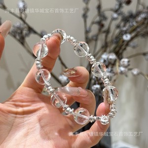 ナチュラルホワイトクリスタルブレスレットホワイトウォータービーズデザインさわやかな氷透明レディースクリスタルブレスレットクリスタルS925シルバー