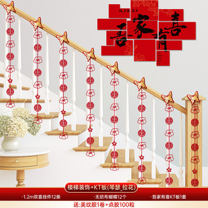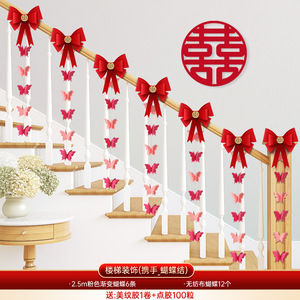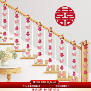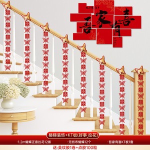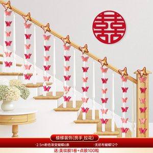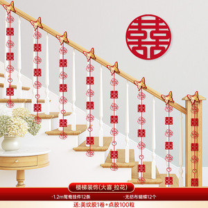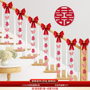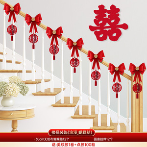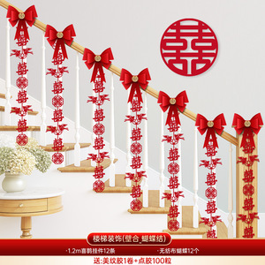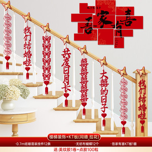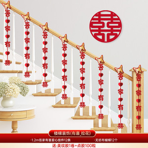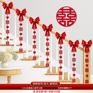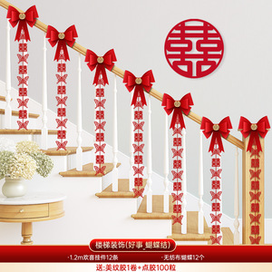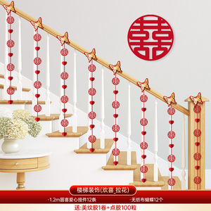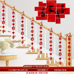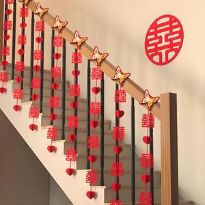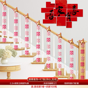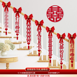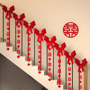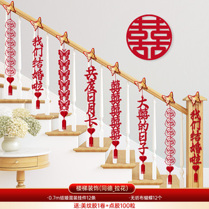 結婚式の階段手すり装飾リボンラテアートセット田舎の自作住宅結婚式の部屋の装飾長い幸せの言葉の吊り下げ飾り