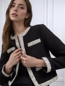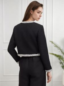 ヨーロッパとアメリカのフランスの絶妙なラウンドネックカラーブロックトリムデザインの小さな香りのツイードレディース新しいショートジャケットハイエンド