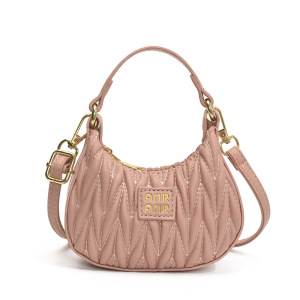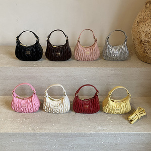 韓国風のシンプルな無地の女の子のショルダーバッグ、スタイリッシュなミニベビーポータブル脇の下バッグ、新しいプリーツ子供用バッグ